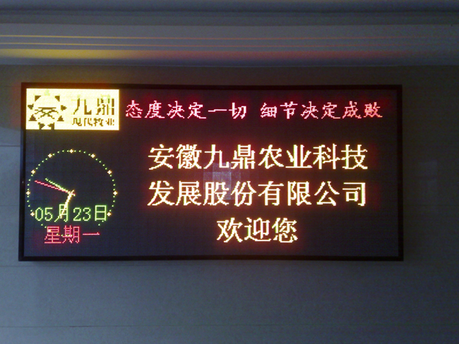 安徽九鼎農(nóng)業(yè)科技發(fā)展股份有限公司為更好的對外展示,升級之后的監(jiān)控室將成為集監(jiān)控及數(shù)據(jù)處理與顯示為一體的綜合化展示廳,本次監(jiān)控室升級改造工程主要包括在原有四臺52寸液晶監(jiān)視器的基礎(chǔ)上再增加四臺52寸液晶監(jiān)視器、LED電子屏一臺、數(shù)據(jù)處理服務(wù)器一臺。